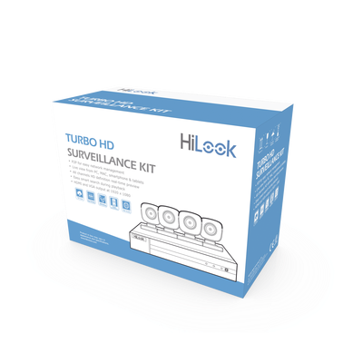 KIT TurboHD 1080p / DVR 8 canales con H.265+ / 4 Cámaras Bala Metálicas / Fuente de Poder / Accesorios de Instalación HL28LQKITS-M(B)